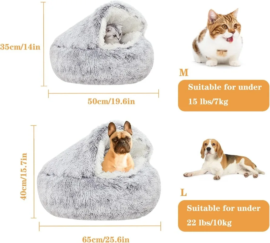 Faux Fur Material: This dog bed with cover cave is made of soft plush material that provides a comfortable place for your pet to sleep and ensures your cat/dog's comfort, and the self-warming fleece fabric is soft to the touch and will keep your small dog or cat warm in the winter